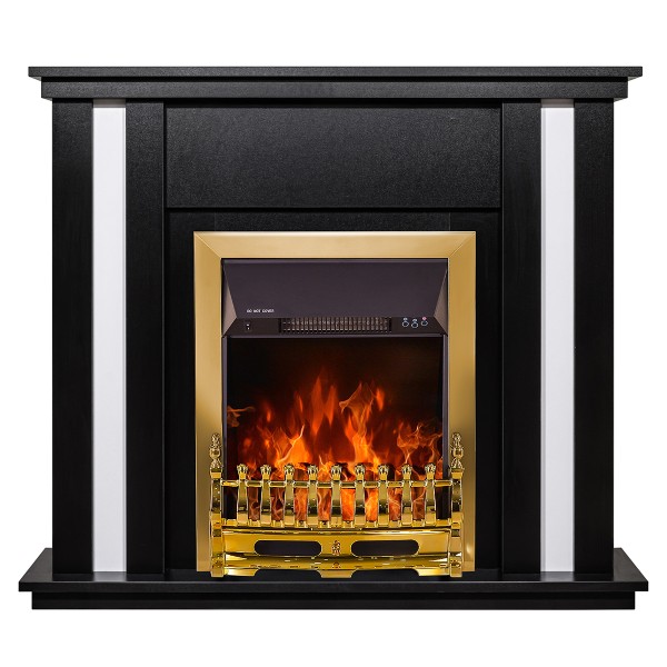 Semineu electric decorativ cu mobilier, Gustavo & Galileo Gold, Negru/alb, Art Flame 1100 x 950 x 270